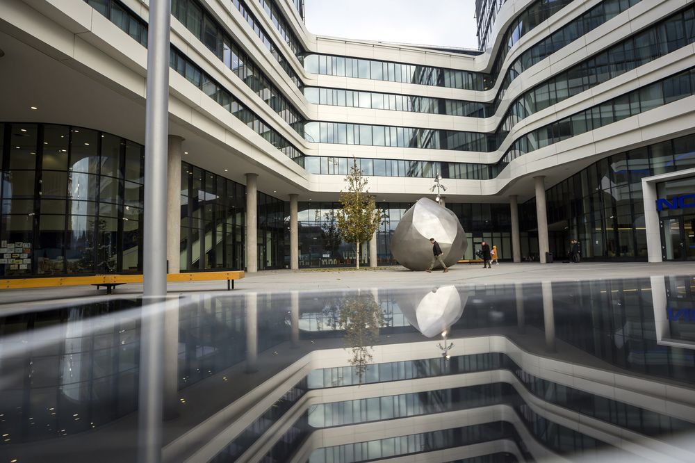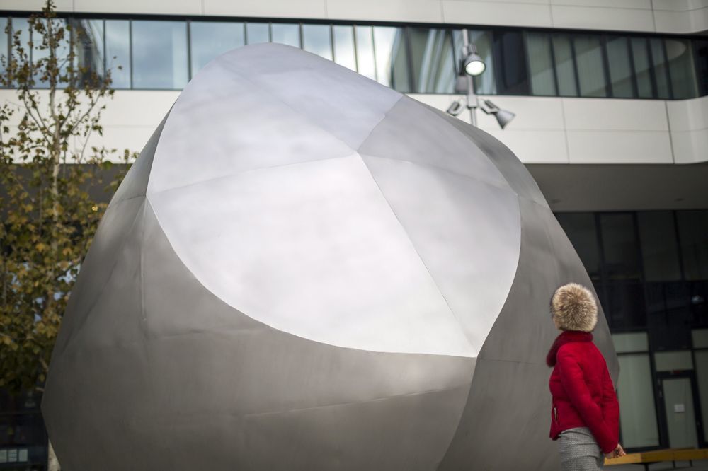 A Nokia Skypark irodaház elé került a Gömböc-szobor (MTI Fotó: Mohai Balázs)