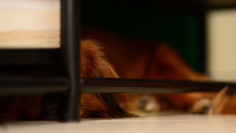 Ekkor pánikom új fordulatot vett. Beteg! Biztosan beteg, ha így remeg. Simogattam, csalogattam, becéztem, falatot adtam, de nem sikerült rávennem, hogy önállóan kijöjjön a szekrényből. Próbáltam őt húzni is, de amint kicsit kijjebb került, és engedtem a húzáson, ő rögtön még beljebb próbált mászni és méreteit meghazudtoló kis gombócba összecsavarni magát. Hosszasan huzakodtunk mind kétségbeesettebben. Furcsa látványt nyújthattam égnek meredő fenékkel, derékig a szekrénybe bújva kedves szavakat, becézgetéseket duruzsolva a csak számomra látható ír szetternek, aki már annyira picire húzta össze magát, hogy szinte matrica lett az öblös mély szekrény hátsó falán.