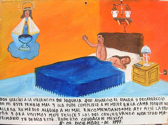 Köszönöm a Guadalupei Szűznek, hogy meghallgatta az imáimat: a férjem általában nagyon unalmas ember, de bizonyos éjszakákon vörösen izzó démonná változik, és néhány órára megszűnik unalmasnak lenni. Így kárpótol az eseménytelen hétköznapokért. (1979, Mexikóváros)