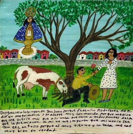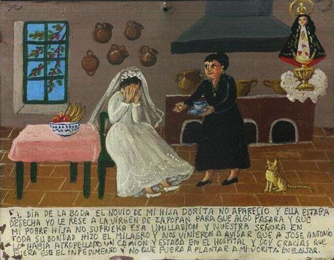 Noha a forma látszólag nagyon kötött, a kifogyhatatlan témagazdagság, a sokszor vicces, misztikus, profán, hétköznapi, megrázó vagy egyszerűen csak bizarr és mindig nagyon személyes (vagy annak tűnő) történetek miatt valójában nincs két ugyanolyan retablo, mi több, laikusként igazából egy-egy műről sem lehet minden esetben egyértelműen eldönteni, hogy micsoda: naiv népművészet? Posztmodern képregény? Csattanós vicc? Egyperces novella? Drámai önvallomás? A nagy mennyei hűtőajtóra kiragasztott, felnőttek által készített gyerekrajz? Az egyik legjobb és legnagyobb internetes gyűjtemény, a huszadik és huszonegyedik századi, modern, forradalom utáni Mexikó retablotermését feldolgozó, angol fordításokkal gondosan ellátott Retablos (vagy az ahhoz tartozó blog) talán segít eligazodni. Innen válogattuk ki most pár kedvencünket (főleg párkapcsolati témában), de érdemes kattintani, mert van még több száz, és szinte mindennap frissül az adatbázis.