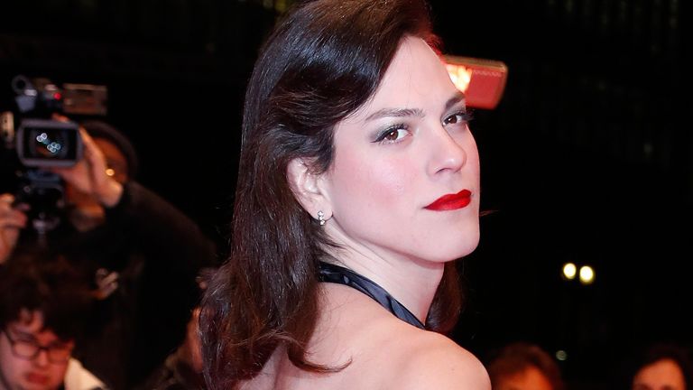 Daniela Vega chilei színésznő a 67. Berlini Nemzetközi Filmfesztivál díjkiosztó ünnepségére érkezik 2017. február 18-án. (MTI/EPA/Ian Langsdon)