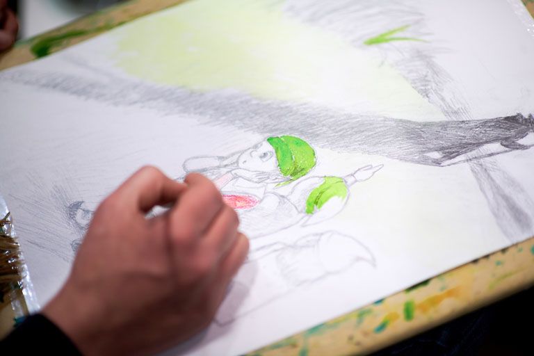 Készül az illusztráció a Manó-zug meséihez (Fotó: Végel Dániel)