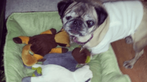 Sajnos nem volt ez mindig így, Fergie életének nagy része azzal telt, hogy pároztatták, és sorban egymás után születték vele a kiskutyákat. De még csak nem is szoptathatta, mert kegyetlen gazdája rögtön elválasztotta és eladta őket. Végül akkor adta Fergie-t állatmenhelyre, amikor az idős francia buldog már nem tudott több kölyköt szülni. Az állatmenhelyen Fergie végre kiélhette anyai ösztöneit, kapott három plüss kisállatot, amelyeket azóta is sajátjaként őriz. A matróna anyakutyát nemrégen egy fiatal nő fogadta örökbe, aki első pillantásra beleszeretett a gondoskodó Fergie-be. A sok megpróbáltatás ellenére is vidám kiskutya természetesen magával vihette plüss állatkáit is új lakóhelyére.
