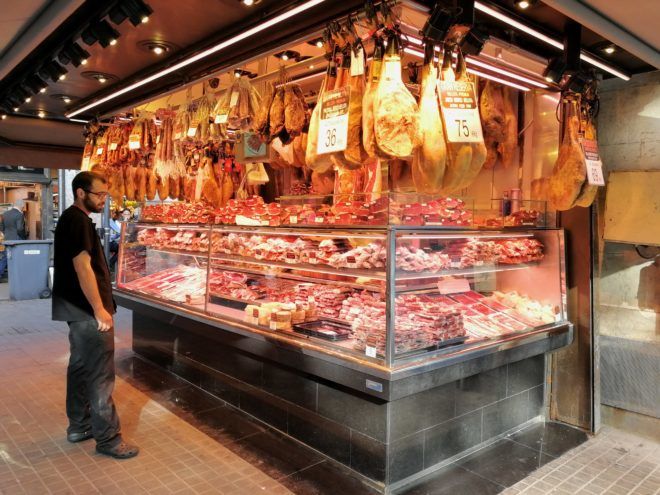 Spanyolországban járva nem nagy meglepetés, hogy serranói és ibériai sonkából többtonnányit találunk a piac pár száz négyzetméterén.