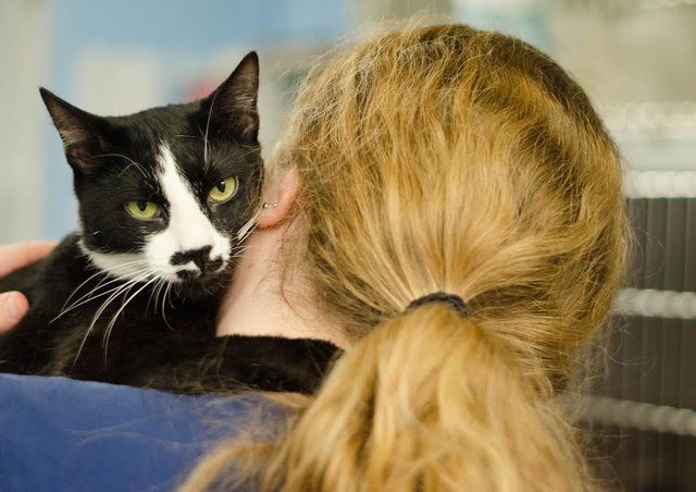 Azóta igazi bújós cica lett belőle, aki bébiorangutánként csimpaszkodik az emberre, majd kisbabákat meghazudtoló cukisággal hajtja a fejét a gondozói vállára. Reméljük, hamarosan gazdára talál!