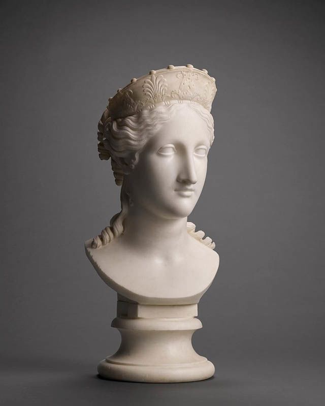 A békét jelképező női szobrot a háborús évek után, Napóleon Elba-szigeti száműzetésének idején készítette Canova, ajándékba szánta barátjának, a politikus és műgyűjtő John Campbellnek, Cawdor bárójának. A mellszobornak csöndes élete volt a Cawdor család pembrokeshire-i kastélyában. Campbell 1821-ben hunyt el, és a 150 szobás kastély őrizte óriási gyűjteményét, amelyben feledésbe merült a Canova-szobor.