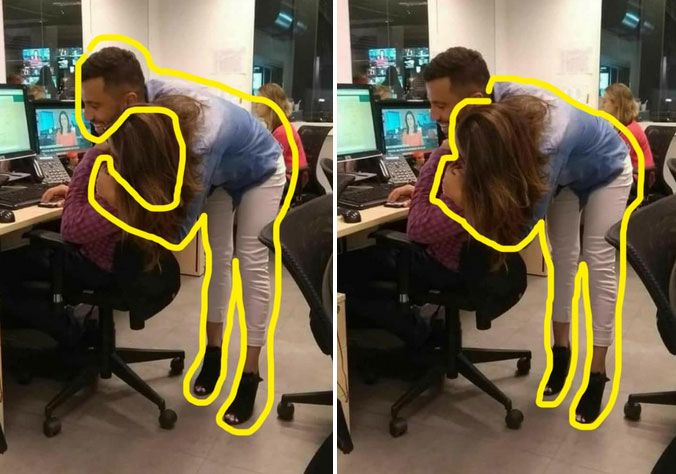 A képen szereplő férfi, Raphael Perachi osztotta meg elsőként az Instagram-oldalán ezt a fotót, mely azóta keresztül-kasul bejárta a közösségi oldalakat. Első pillantásra úgy tűnik, mintha a férfi hajolna oda, hogy megölelje az asztalnál ülő nőt.