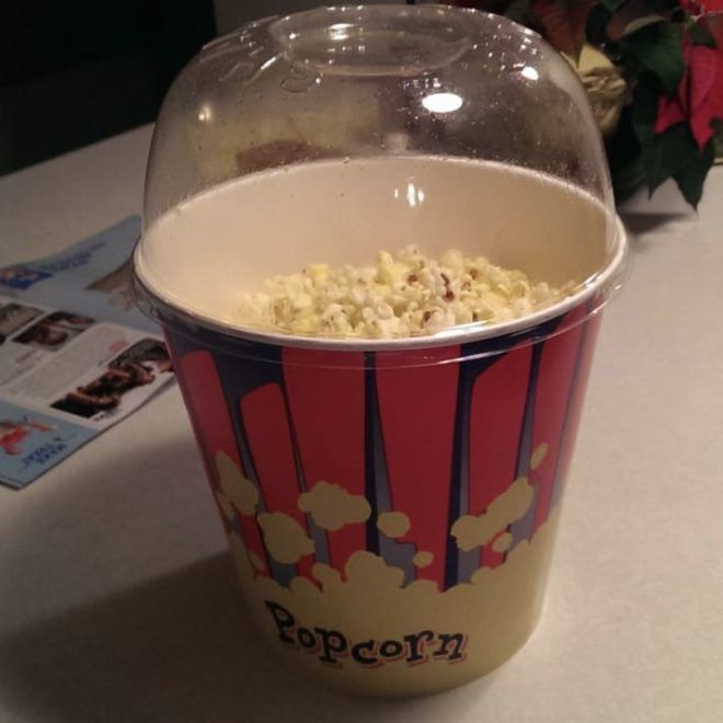 10. Ilyen egy tökéletes popcorn-csomagolás: a tetőnek hála összerázhatod a vajjal, utána pedig megfordítod, és kényelmesen eheted!