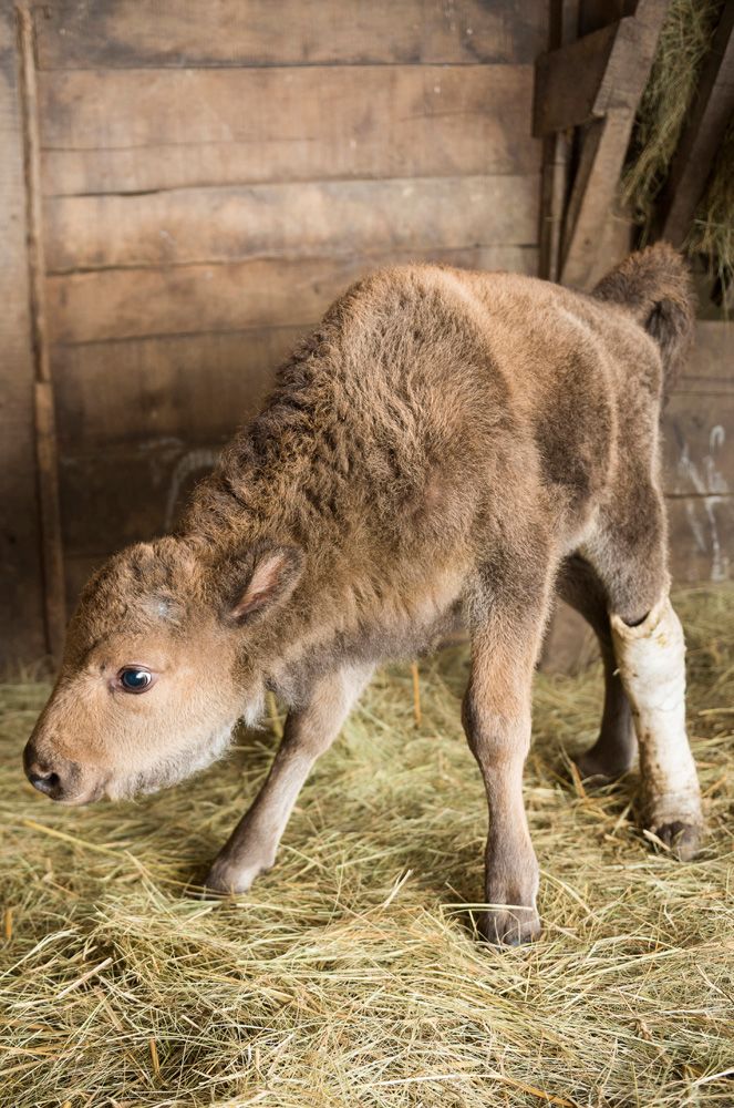 A kis borjút az anyja nem tudja szoptatni, ezért mesterségesen kell táplálni. A park vezető gondozója és csapata háromóránként eteti a jelenleg háromhetes állatot, aki most már naponta hat liter borjútejpótló tápszert eszik meg.