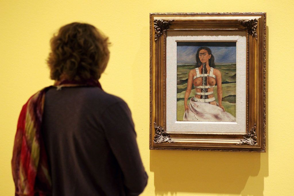 Azért természetesen senki nem fogja harsányan végigröhögni azt a kiállítást, amelyen a legismertebb művek közé tartozó Törött oszlop adja meg az alaphangulatot; ezen a képen a kettéhasított, szögekkel kivert, fűzőbe szorított, a gerince helyén meg egy rogyadozó antik oszlopot viselő Frida Kahlo látható, aki olyan benyomást kelt a kietlen sivatag közepén, mint egy szenvedéseit méltósággal és kötelességszerűen viselő ókeresztény mártír, egy megtépázott kariatida vagy egy inverz oszlopszent. Nyilván nem véletlenül került ez ilyen központi helyre, rögtön a bejárattal szemközti falra.