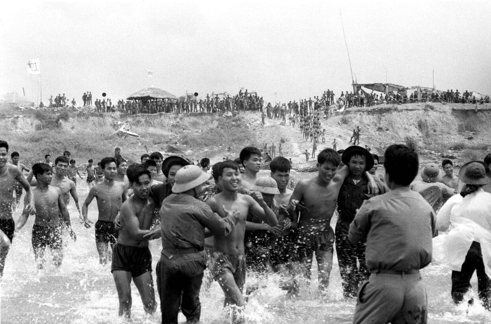 Friedmann Endre World Press Photo-, Balázs Béla- és Táncsics Mihály-díjas fotóriporter 1973. március 26-án készített felvétele a Dél-Vietnami Ideiglenes Forradalmi Kormány harcosairól, akik a Thach Han folyóban találkoztak a saigoni rezsim fogságából szabadult társaikkal (MTI Fotó: Friedmann Endre)