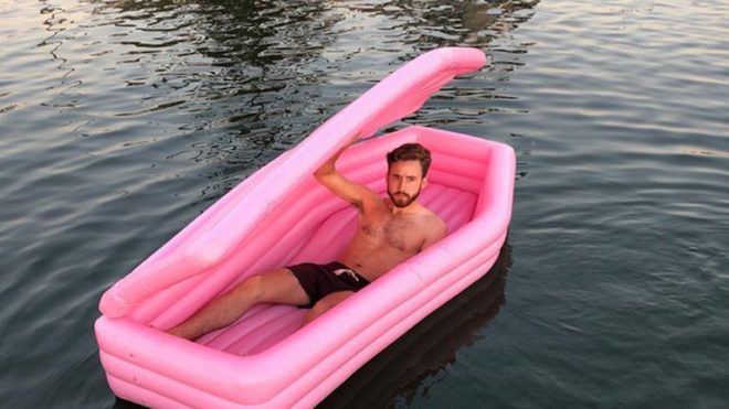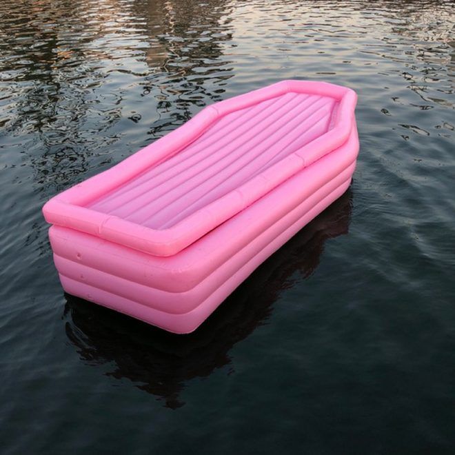 Tavaly nyáron mindenki a hattyú meg az unikornis alakú gumimatracokért volt oda, az idei nyár slágere azonban egy sokkal morbidabb strandkiegészítő lehet: a koporsó alakú úszómatrac.