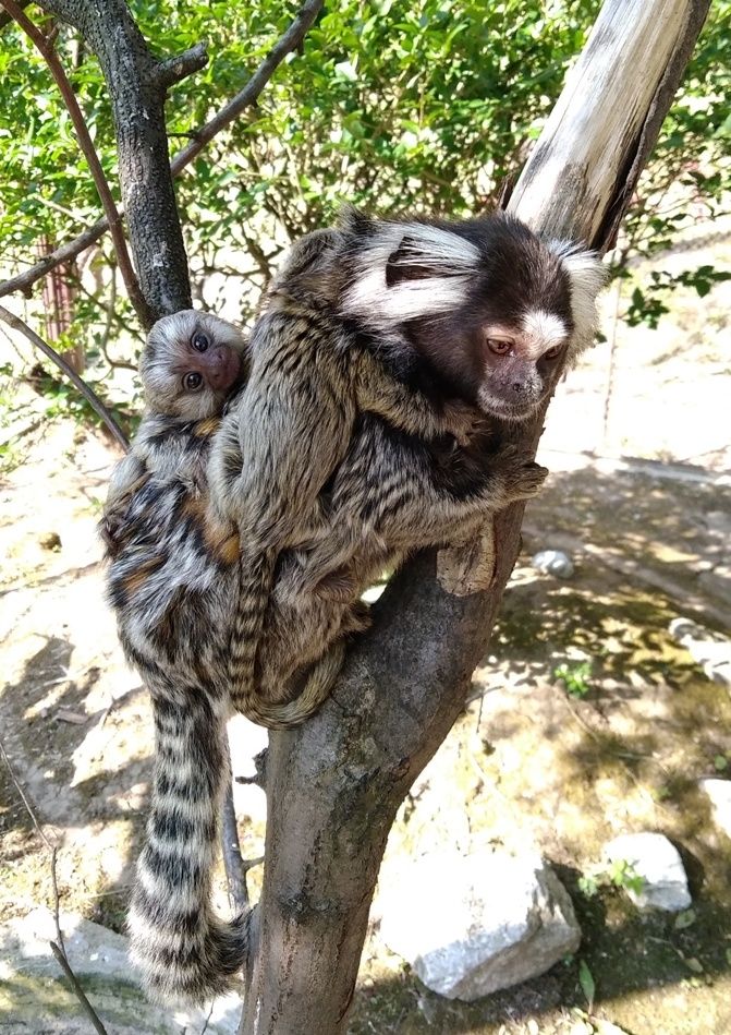 A Trópusi ház egyik külső kifutójában élő selyemmajompárnak, a 10 év körüli hímnek, Téblábnak és fiatalabb párjának, Taminak megszülettek első utódai. Tami, habár most először lett anya, nagyon gondosan foglalkozik két kicsinyével – áll az állatkert közleményében.