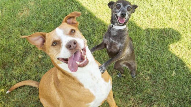 A 7 éves staffordshire terrier Sunny és a 8 éves csivava Georgia nem is lehetnének különbözőbb személyiségek: Sunny kalandvágyó és merész, míg kis barátja óvatos és meggondolt. A két kutya a különbségek ellenére is imádja egymást, így lehetetlen őket szétválasztani.