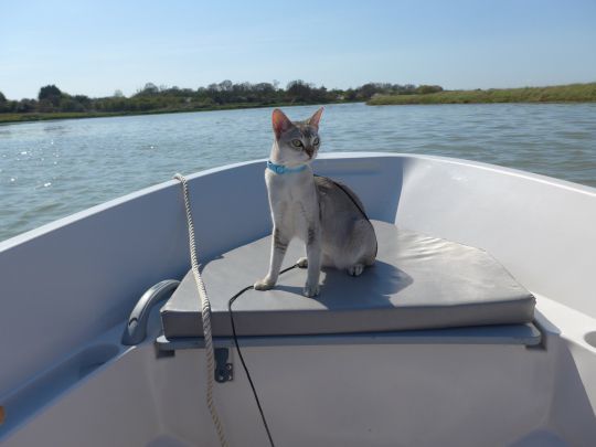 Noodle nem csak a SUP deszkán szereti élvezni a vizet, előfordul, hogy inkább a motorcsónakon lazítást választja. Ahogy a gazdija fogalmaz: „nagyon laza cica”.