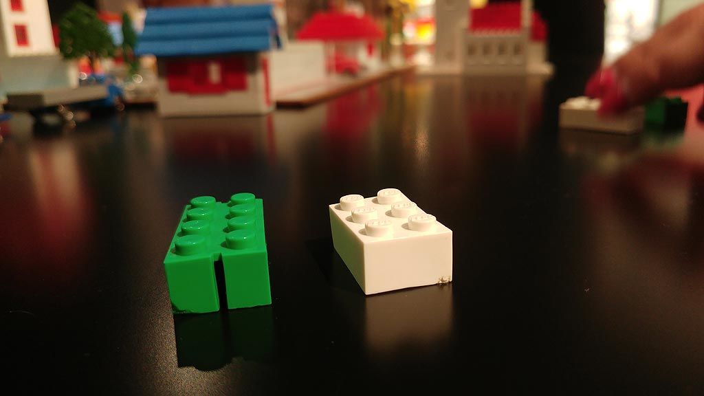 Balra a még üreges „ős-LEGO”, jobbra pedig a modern változat (Fotó: Andersen Dávid)
