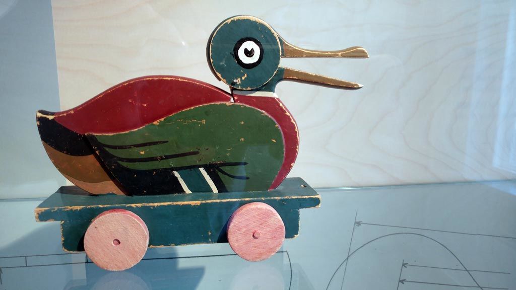 A legendás, fából készült kacsa, Ole Kirk Christiansen egyik első fajátéka (Fotó: Andersen Dávid)