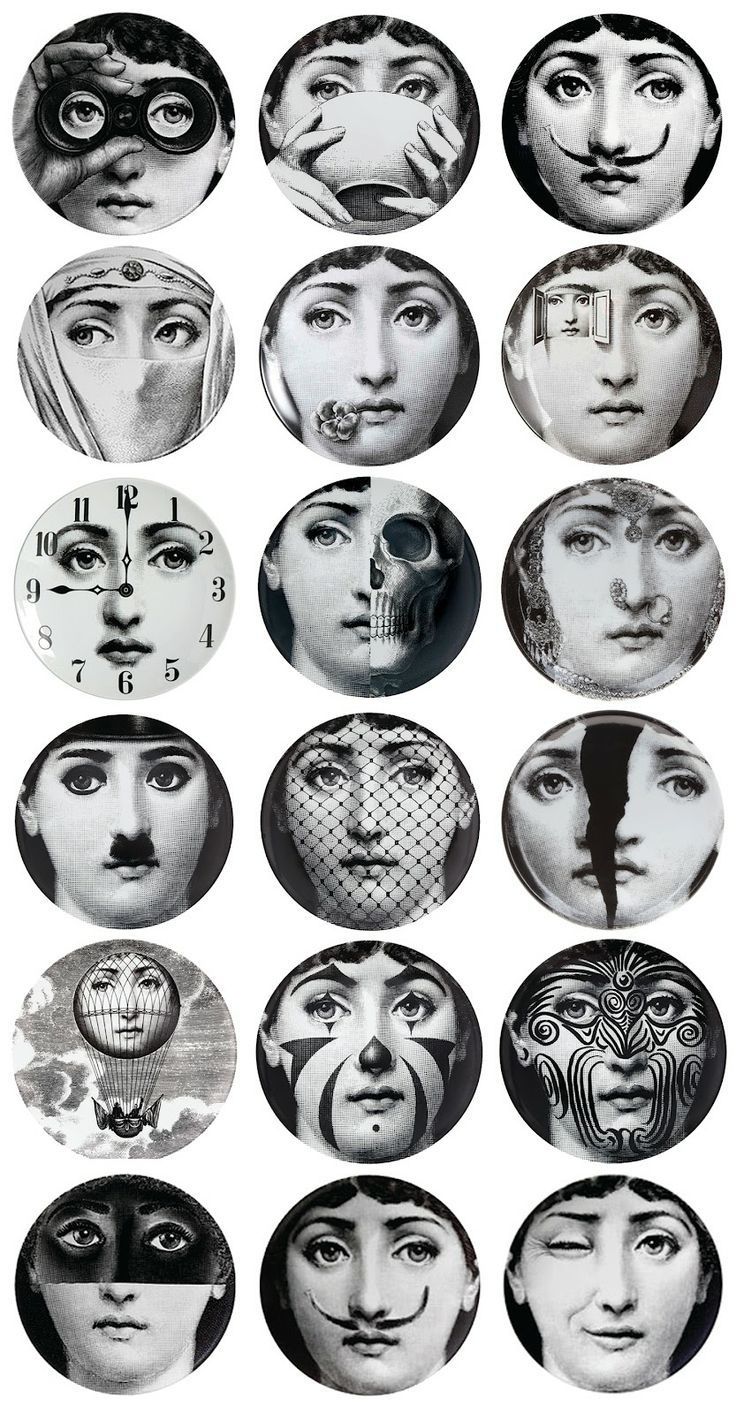 Az első arcképes kerámiatálat 1952-ben készítette a művész, és aztán élete végéig le sem állt vele; nagyjából 350-500 különböző verzió került ki a műhelyéből, de az internetet böngészve könnyen juthatunk arra a megállapításra, hogy ez a szám inkább a végtelenhez közelít (jó, amúgy valószínűleg tényleg a 350 lehet a reális). A motívum azóta tapétán, vázán, faliórán, esernyőn, díszpárnán, teáskannán, hamutartón, papírnehezéken és még sok minden máson is feltűnt, gyakorlatilag nincs olyan használati vagy dekorációs tárgy, amit ne lehetne kapni Téma és variációk-kivitelben, sőt ha úgy tartja kedvünk, bizonyára egy egész életet is lehet élni Fornasetti-inspirálta díszletek között, habár ez azért talán már túlzás lenne.