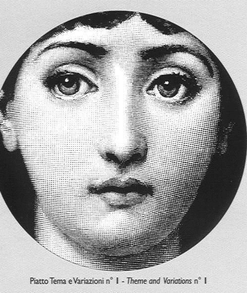 Piero Fornasetti (1913-1988) olasz képzőművész neve talán keveseknek mond bármit is, azonban élete fő művével (illetve élete sok-sok fő művével), a Téma és variációkkal valószínűleg mindenki találkozott már, aki valaha járt, esetleg élt olyan ingatlanban, amit nem eszkimók építettek jégből és hóból a fagyos grönlandi tundrán; ez a sorozat ugyanis az ízléses és megbízható lakásdekoráció frigyládája, Szent Grálja és jolly jokere, amivel még egy tökéletesen dilettáns lakberendező sem nagyon tud mellényúlni. A Téma és a variációk kollekció darabjain egy megejtően szép és megközelíthetetlenül titokzatos fiatal nő portréja látható, egyszer Dalí- vagy Chaplin bajusszal, máskor indiai istennőnek, háremhölgynek, antik szobornak vagy kalózkapitánynak maszkírozva, esetleg maori-tetoválással, szemüvegben, nyelvet öltögetve vagy egy krokodil szájában, netán légballonként újragondolva, de a kép, a nő és az a bizonyos fenségesen egykedvű tekintet (majdnem) mindig ugyanaz, és mindig azonnal felismerhető.