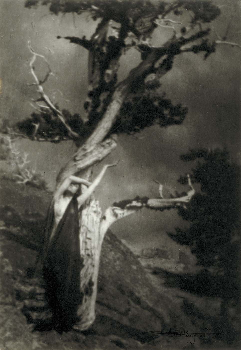 A századfordulót követő években, amikor a nők többnyire szoros fűzőt, több réteg alsóruhát, fodrokat, csipkéket, bokáig érő szoknyát, valamint leszállópályákat idéző, csodálatos kalapokat hordtak, és különösen ügyeltek arra, hogy még véletlenül se vegyék fel ugyanazt a darabot az ebédhez és a kellemes délutáni korzózáshoz, szóval a női divat e különösen pezsgő korszakában Anne Brigman nadrágban és csizmában, mázsányi fotósfelszereléssel vágott neki a vad és festői kaliforniai hegyeknek, ahol aztán meztelen antik istennőként fotózta saját magát (illetve néha különböző barátait vagy a húgát) a zord sziklák és romjaikban is impozáns fenyők társaságában, ami, mondjuk így, meglehetősen szokatlannak számított akkoriban. De hát Anne Brigman nem is volt átlagos nő.