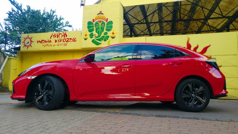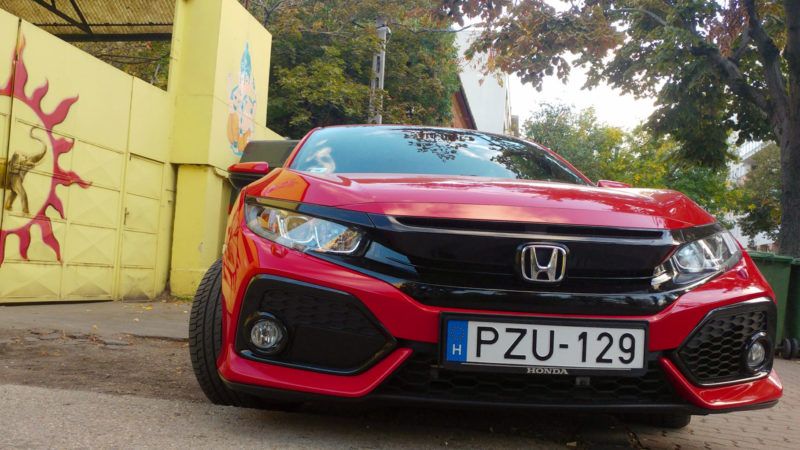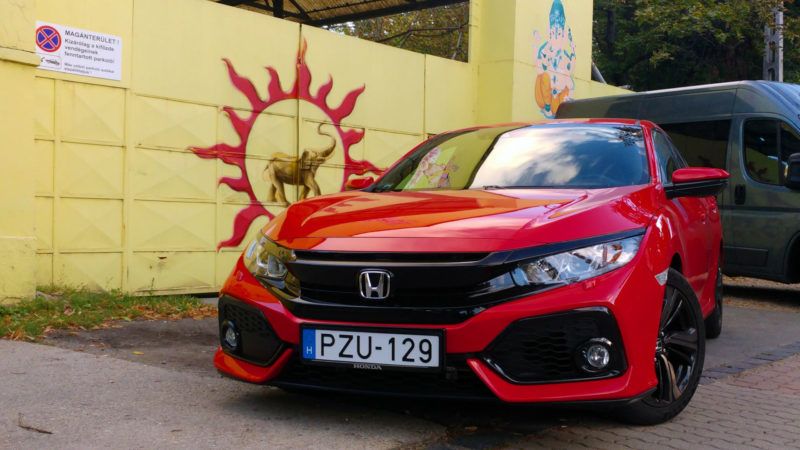 Az általunk kipróbált 2018-as modell a Honda Civic 2016-ban megjelent, teljesen új formatervű változatának legfrissebb verziója, egy automata váltós, 1,6 literes dízelmotorral szerelt tűzpiros szépség, fekete fényezésű könnyűfém felnikkel, négyajtós kivitelben. A 2016-tól bevezetett dizájnt lehet szeretni, lehet nem szeretni, de valószínűleg csupán kevés ember marad közömbös iránta. Különösen a tesztautóhoz hasonló piros színű változatban feltűnő a járgány, amelynek fényszórói fölött vastag fekete csík húzódik a karosszéria két széléig, mintha egy komolyabb bulira sminkelték volna ki.