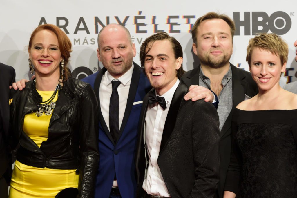 Az Aranyélet 2. évadának díszbemutatója – Ónodi Eszter, Thuróczy Szabolcs, Olasz Renátó és Zomborácz Virág (Fotó: Schumy Csaba)