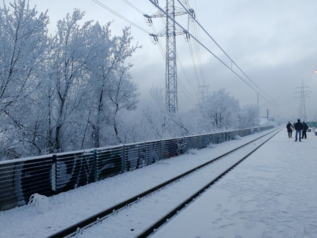 A fehérbe borult újpesti vasútállomás (Fotó: NLCafé)