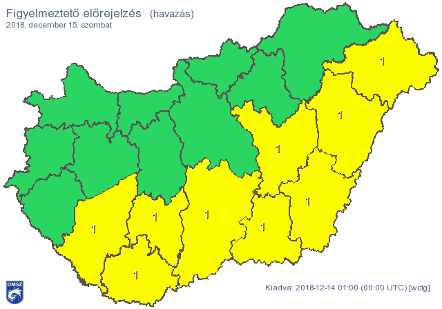 Szombatra ezért 9 megyére adott ki figyelmeztető előrejelzést az Országos Meteorológiai Szolgálat a várható havazás miatt.