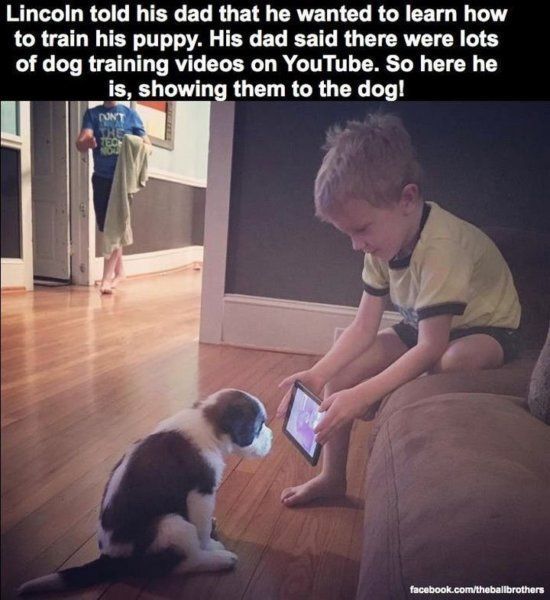 16. A gyerek idomítani szerette volna a kutyát. Az apukája azt mondta, keressen néhány leckét a YouTube-on…