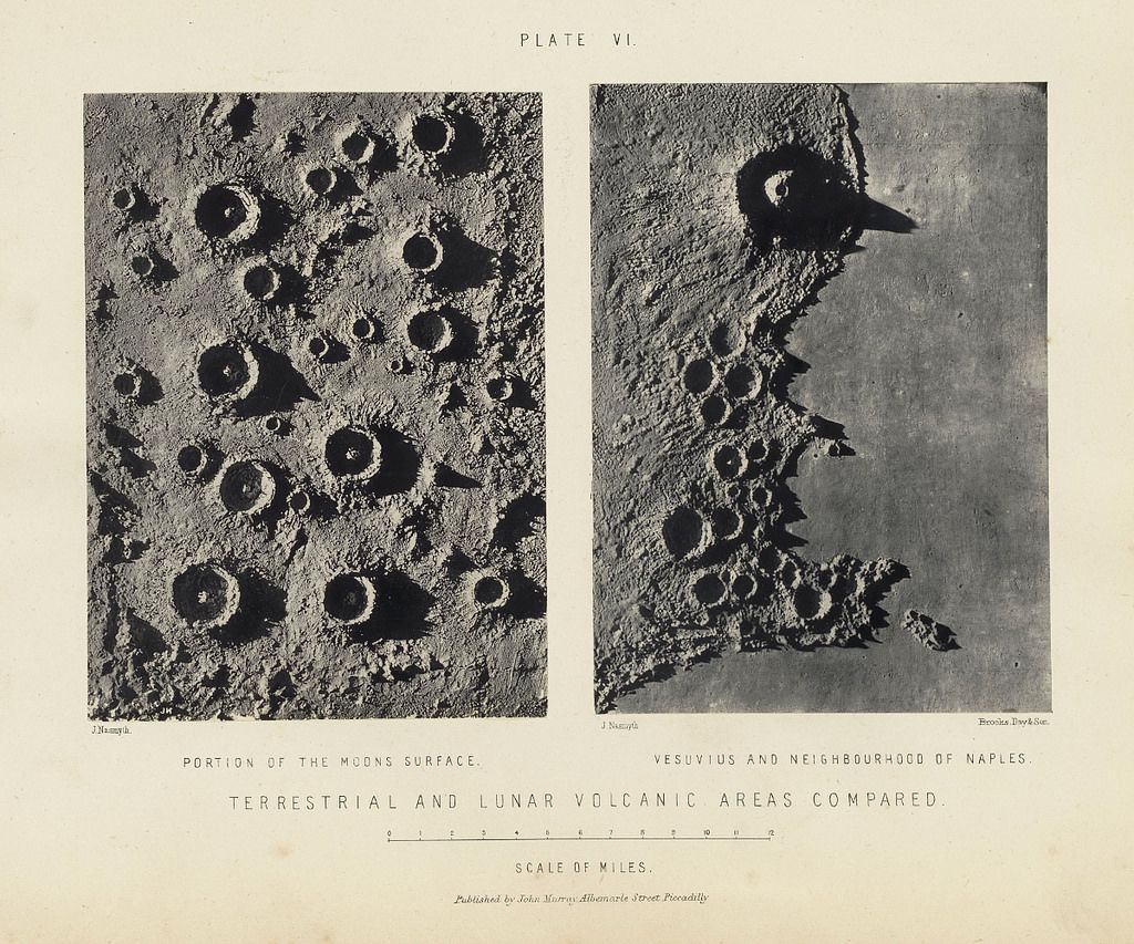 Az 1874-ben megjelent, a maga korában igen népszerű The Moon Considered as a Planet, a World, and a Satellite című kiadványt azóta több szempontból is alaposan meghaladta az idő, viszont az illusztrációk még mai szemmel is lenyűgözőek. Ugyanis a műhöz James Nasmyth, mintha ennél mi sem lenne természetesebb, látványos és részletes fotókat készített a Hold felszínéről.