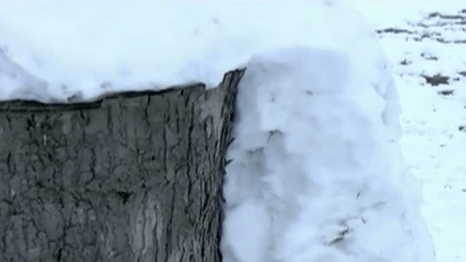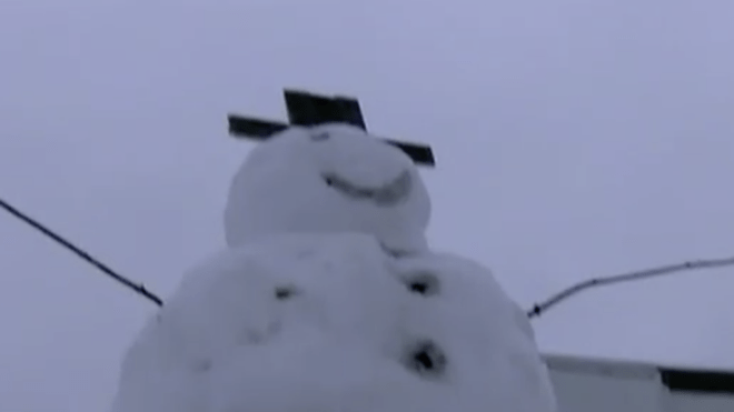 Nem tudhatta azonban, hogy a hóember alapja egy jókora, masszív fatönk. Így az autó és a hóember találkozásából ezúttal a hóember került ki győztesen.
