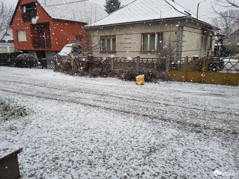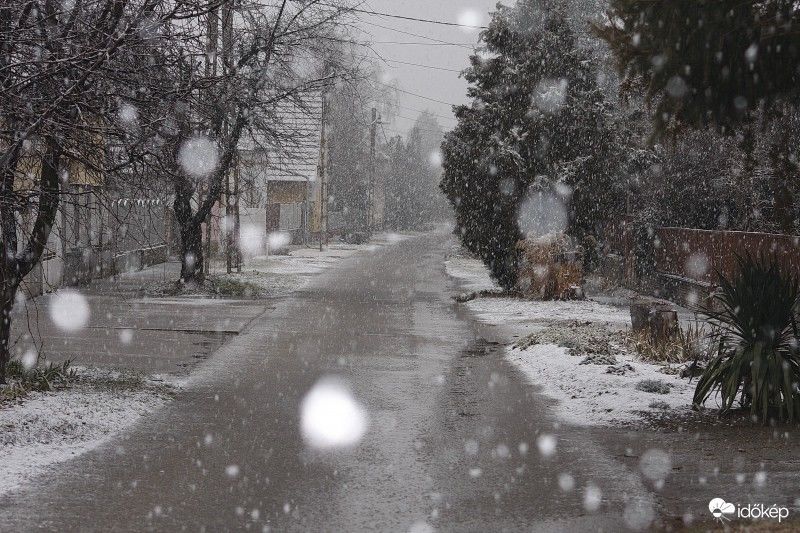 A csapadék közben észak felé terjeszkedett, és sokkal intenzívebbé vált. A Duna-Tisza közében így egyre több helyen nagy pelyhekben hulló hóról számoltak be.