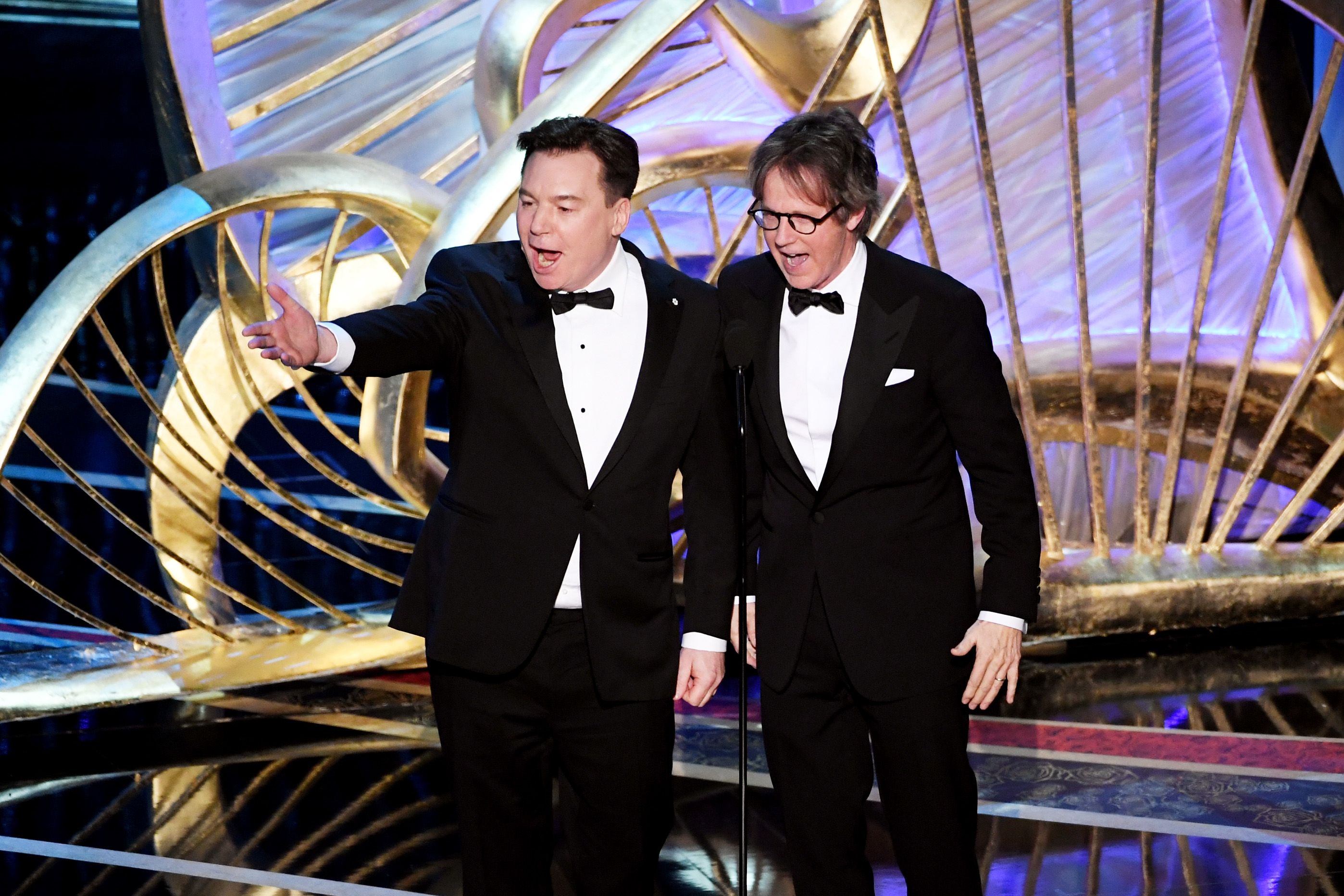 Az est első díját átadó Tina Fey, Amy Poehler és Maya Rudolph trió azért látszólag helyettesíteni voltak hivatott egy házigazdát, és ennek ők maguk is hangot adtak egy-két poén formájában. Ők hárman amúgy rutinos díjátadók együtt, sőt Fey és Poehler már Golden Globe-házigazdák is voltak, és a köztük lévő összhang most is kincset jelentett. Természetesen nem hagyhatták ki az Akadémia idei baklövéseinek felsorolását, kiemelvén, hogy az előzetes hírekkel ellentétben ugyan nem lesznek díjak átadva a reklámszünetben, de a sztárok ne felejtsenek el reklámokat felolvasni a köszönőbeszédükben. A szintén prezentálóként jelen lévő Tyler Perry is az Akadémia orra alá dörgölte, hogy a reklámidőben akartak átadni néhány szobrot, de szerencsére később az egész este már nem arról szólt, hogy mindenki erre akarjon emlékeztetni minket.