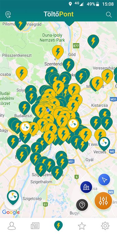 Szerencsére legalább két okostelefonos applikáció is segít a keresgélésben, ráadásul mindkettő elérhető Androidra és iOS-re is. A PlugShare-re elsősorban külföldi utazáskor lehet szükségünk, de a hazai töltőpontok java is szerepel rajta, míg az NKM TöltőPont alkalmazás magyar nyelvű felületén keresztül könnyedén megtalálhatjuk a legközelebbi oszlopot. Mindkettő jelöli, hogy milyen típusú töltőről van szó, sőt az utóbbiban még a Tesla járművek számára kiépített szupergyors töltőket is láthatjuk. A fenti térkép önmagáért beszél: Budapesten és környékén ma már tényleg nem kell túl sokat keresgélni, valószínű, hogy egy kilométeres körzetünkben több töltőpontra is rábukkanhatunk, de a vidéki nagyvárosokban, sőt akár kisebb településeken is akad egy-egy legalább Type2-es töltőoszlop.