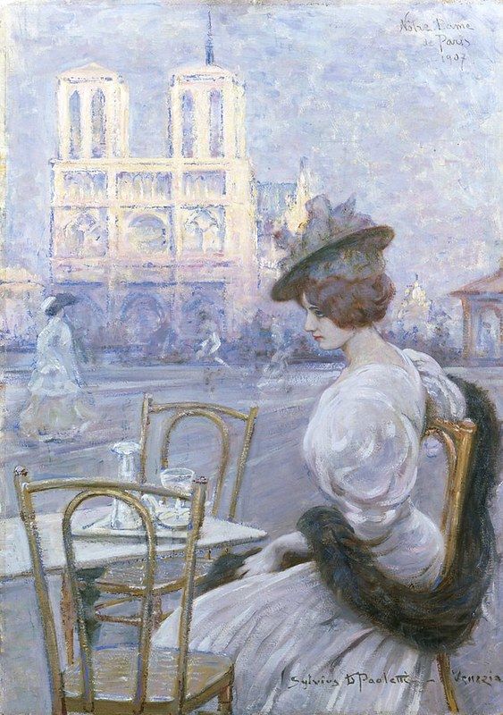 Elegáns hölgy a Notre-Dame előtt alkoholizál Sylvius D. Paoletti festményén, 1907.ben (forrás: wikipedia)