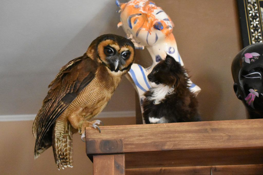 Öt perc sem telik el, mire Sophie végül megunja a fenti produkciót, és őrhelyet vált. Ez esetében annyit jelent, hogy higanylazán keresztülvitorlázik a nappalin, letelepszik a szoba legmagasabb szekrényére, és onnan méreget minket. De leginkább a kutyát. „Ez az első alkalom, hogy találkozik Bambival” – magyarázza a maláj erdei bagolyfi viselkedését Breznai Annamária, a színes állatsereglet gazdája, majd hozzáteszi: a látszat ellenére egy pillanatig sem aggódik azon, vajon Sophie elfogadja-e majd a szertelen vizslakölyköt. „Sophie a legbarátságosabb, legkedvesebb teremtmény, akivel csak találkoztam. Kell neki néhány óra, míg feloldódik, de aztán mindig, mindenkit elfogad.”