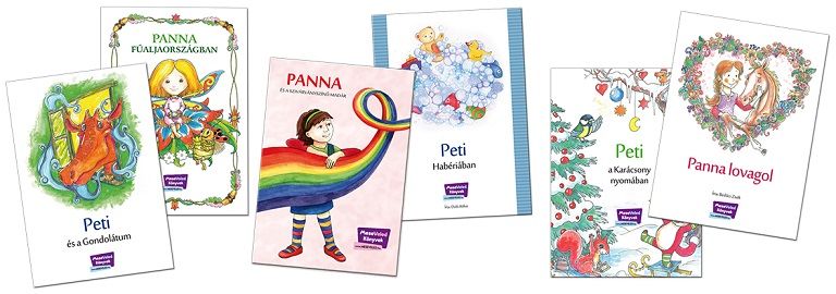 A kínálatban találunk vastag lapos, leporelló kihajtható mesekönyvet a legkisebbeknek, a nagyobbaknak – egészen kisiskolás korig – hosszabb meséket, kemény borítós könyveket.