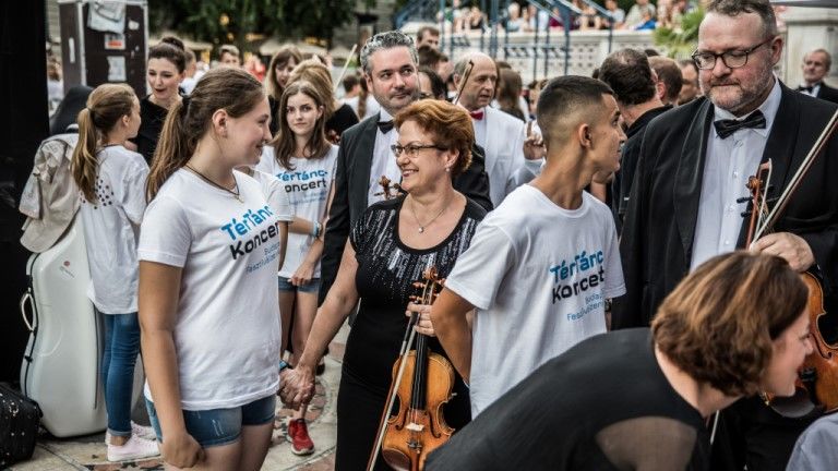 A világ top zenekarai között emlegetett Budapesti Fesztiválzenekar ezen a nyáron ötödször rendezi meg ingyenes szabadtéri koncertjét, a TérTáncKoncertet, ahol több mint 400 gyerek táncol együtt a játékukra. Ahány fiatal, annyi történet: rengeteg köztük a hátrányos vagy halmozottan hátrányos helyzetű, sokan most jönnek először a fővárosba, de vannak köztük szerencsésebb sorsú gyerekek is. Bármennyire különböznek is egymástól, bármilyen messziről is érkeznek földrajzilag, lelkileg vagy szociális hátterüket tekintve, ezen a napon, ebben az órában együtt alkotnak valami hatalmasat egy világhírű zenekarral, többezer ember előtt. Gyertek ki ti is a térre, örüljetek a bátorságuknak és a tehetségüknek! Ha van kedvetek, táncolhattok is!