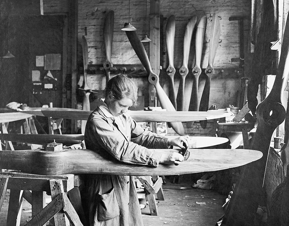Hegesztő munkásnő a repülőgépgyárban, 1918-ban (Fotó: Wikipedia)