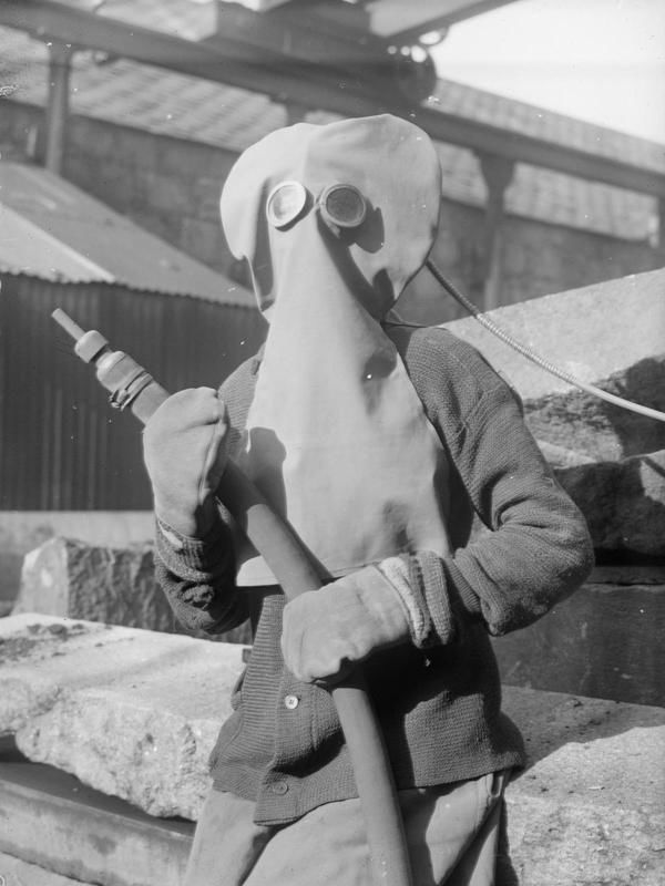 Homokfúvás előtt, menő védőfelszelésben, valamikor 1914-ben (Fotó: Wikipedia)