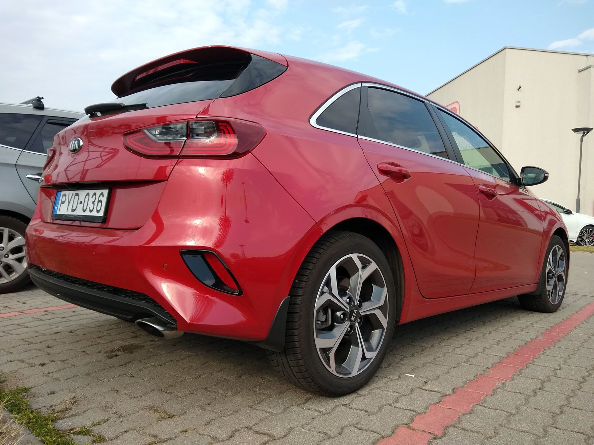 Ez már kívülről is jól látszik, a korábbi, picit gömbölydedebb formák árnyalatnyit szögletesebbek lettek, de épp csak annyira, hogy egy kicsit sportosabb megjelenést kölcsönözzenek a Ceednek. Az általunk kipróbált autó az Infra Red fantázianevű festést kapta, amivel szinte kiugrik a magyar utakon közlekedő fehér-ezüst-fekete autók tengeréből. Látványosak a könnyűfém felnik is, amelyekkel azért nem árt vigyázni, mert a szép, nagy, csiszolt fémfelületek már a járdaszegély gondolatától is hajlamosak a karcolódásra, így parkolásnál érdemes extrán odafigyelni, hogy a padkázást elkerüljük – ebben szerencsére a beépített tolatóradar és kamera komoly segítséget nyújt.