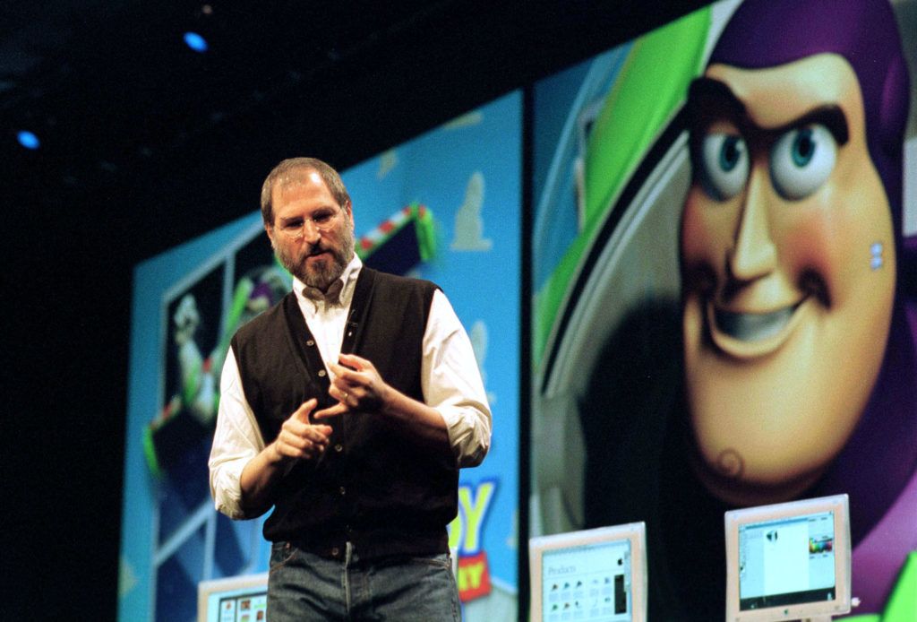 Steve Jobs, az Apple alapítója az új Macintosh G4 teljesítményét demonstrálja a Toy Story animációival (Fotó: Alan Dejecacion/Getty Images)