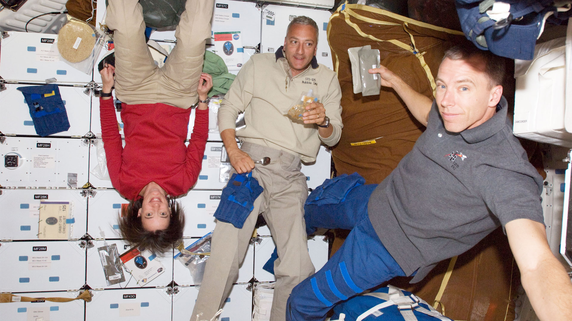 Mike Massimino (középen) a világűrben egy 2009-es küldetés során (Fotó: NASA)
