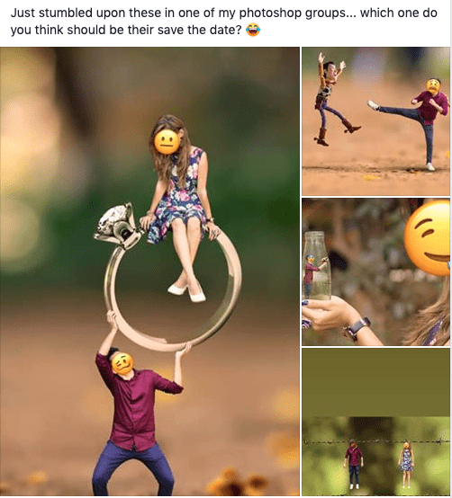 Nem mindennapi eljegyzési képeket posztolt egy pár. A képeken a pár látható miniatűr formában, az egyiken az eljegyzési gyűrű van a középpontban. Ez az ötlet még tetszett a netezőknek, ám a többi képen furcsa elemek is felbukkannak, például Woody a Toys Storyból és egy szögesdrót is.