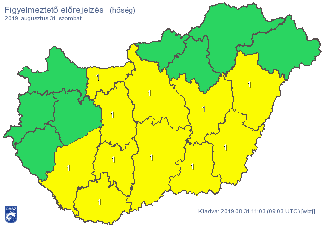 A napi középhőmérséklet nagy területen 25 fok felett valószínű, délkeleten 27 fok feletti középhőmérséklet is lehet. Emiatt hőség miatt is kiadták a figyelmeztetést: