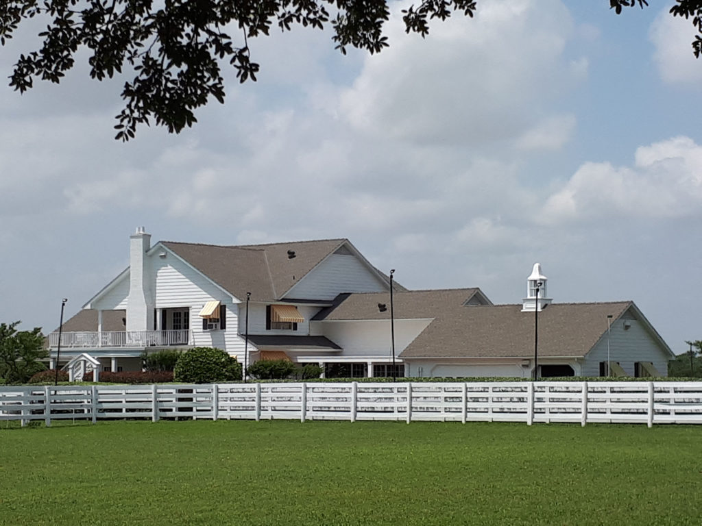 A teraszon végtelenítve szól a sorozat főcímzenéje, ami eleinte kifejezetten hangulatos, de aztán egyfajta ösztönző erő arra, hogy kicsit messzebb menjünk a háztól és felfedezzük a melléképületeket. Ezek egy részét még a második tulajdonos építette, aki nem elégedett meg a belépőjegyekből összeszedett pénzzel, így a birtokon hatalmas, többezer fő befogadására alkalmas rendezvény- és konferenciaközpontot hozott létre. Még ma is bátran építenek a sorozat vonzerejére, de meg is becsülik a látogatókat – ottjártunkkor is egy nagy eseményre készültek, de nyugodtan körbe lehetett nézni. Az egyik terem közepén például Jock autója áll: a szürke, Ewing-1 rendszámú Lincoln Continental akkora, hogy a csomagtartójába egész kényelmesen be lehetne feküdni.