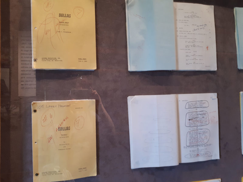 A túra végén, az ereklyék gyűjtőhelyén járunk: itt meg lehet például nézni a fegyvert, amivel rálőttek Jockey Ewingra, vagy a meglepően kis méretű menyasszonyi ruhát, amiben Lucy férjhez ment. Eredeti, aláírt szövegkönyvekből, promóciós fotókból sincs hiány: ezek egy részét jól ismerjük az egykori TV műsorújságok hasábjairól. A családi kapcsolatok, románcok felidézésében egy fal nagyságú, fényképes családfa segít: ezen a lövöldözések elkövetői és áldozatai is össze vannak kötve.