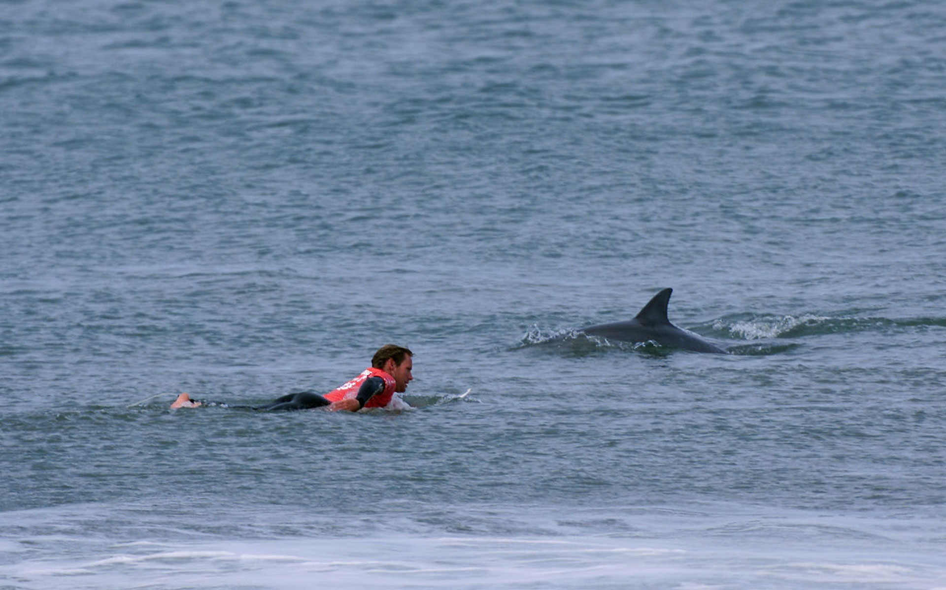 A dulakodás közben azonban a férfi háta így is súlyosan megsérült, ezért a helyzete egyre reménytelenebbnek tűnt – ekkor azonban különös dolog történt: megjelent egy csapat palackorrú delfin, és szabályos védőgyűrűt alakítottak ki a vergődő férfi körül, aki ennek köszönhetően ki tudott kecmeregni a partra, és szinte teljesen fel is gyógyult. Nem ez volt egyébként az első eset, amikor egy csapat delfin közbelépése mentett emberéletet: egy évvel korábban Új-Zélandon négy vízimentőt vettek körbe hasonló módon a delfinek, hogy megóvják őket a környéken portyázó cápáktól.