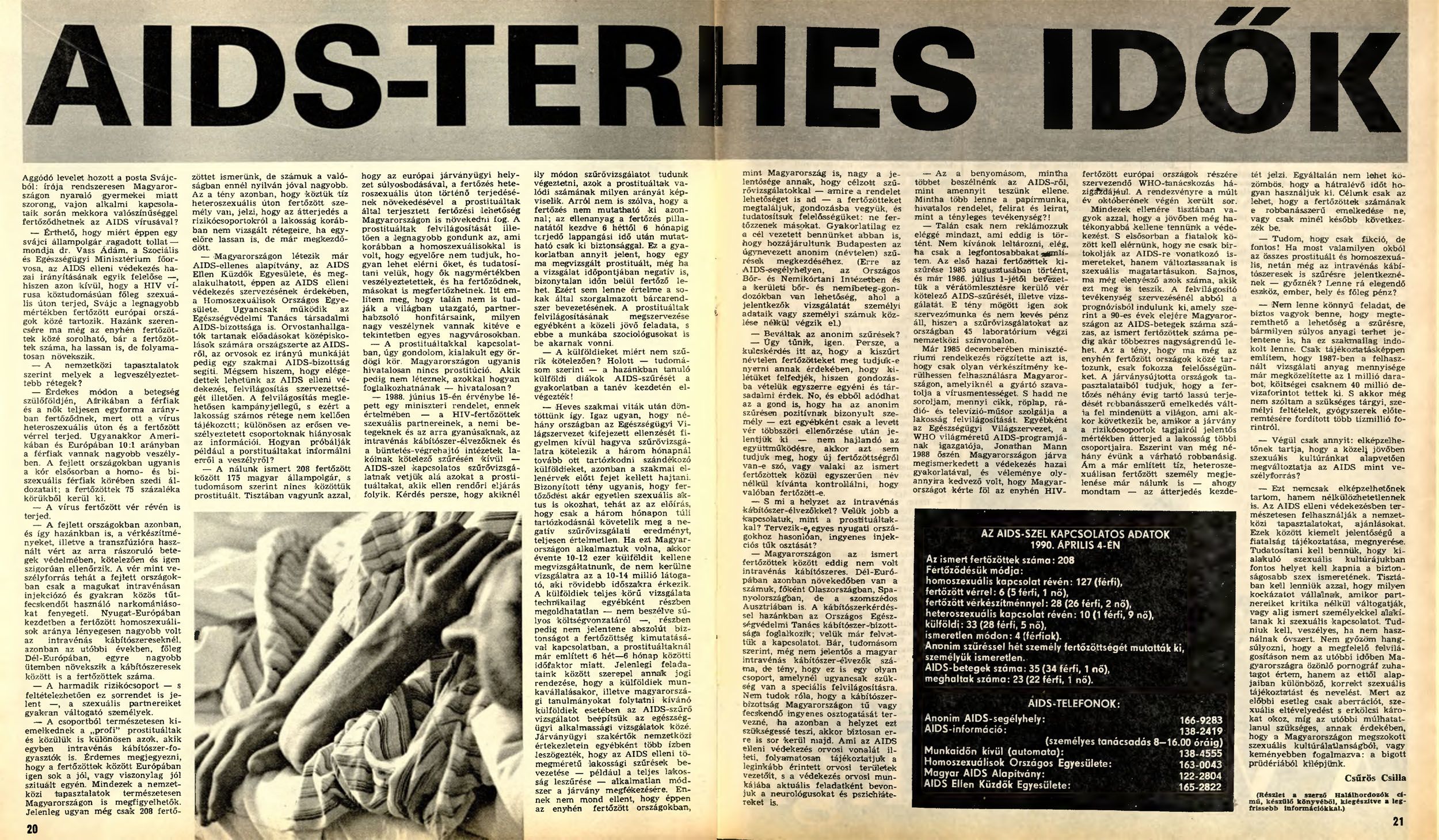 Noha Magyarországon sosem volt kritikus számú megbetegedés, akkoriban rengeteg szó esett az AIDS-ről, mind a közbeszédben, mind a sajtóban. Olyannyira, hogy svájci olvasójuk még aggódó levelet is írt a Nők Lapjának kérdezvén, kell-e féltenie gyerekeit, akik rendszeresen nyaralnak hazánkban. A kedvenc női magazin alaposan utána is járt a dolognak. A komoly témákat felvállaló riportok és az egy-egy problémát körüljáró, feltáró cikkek azóta is fontos részei a lapnak.