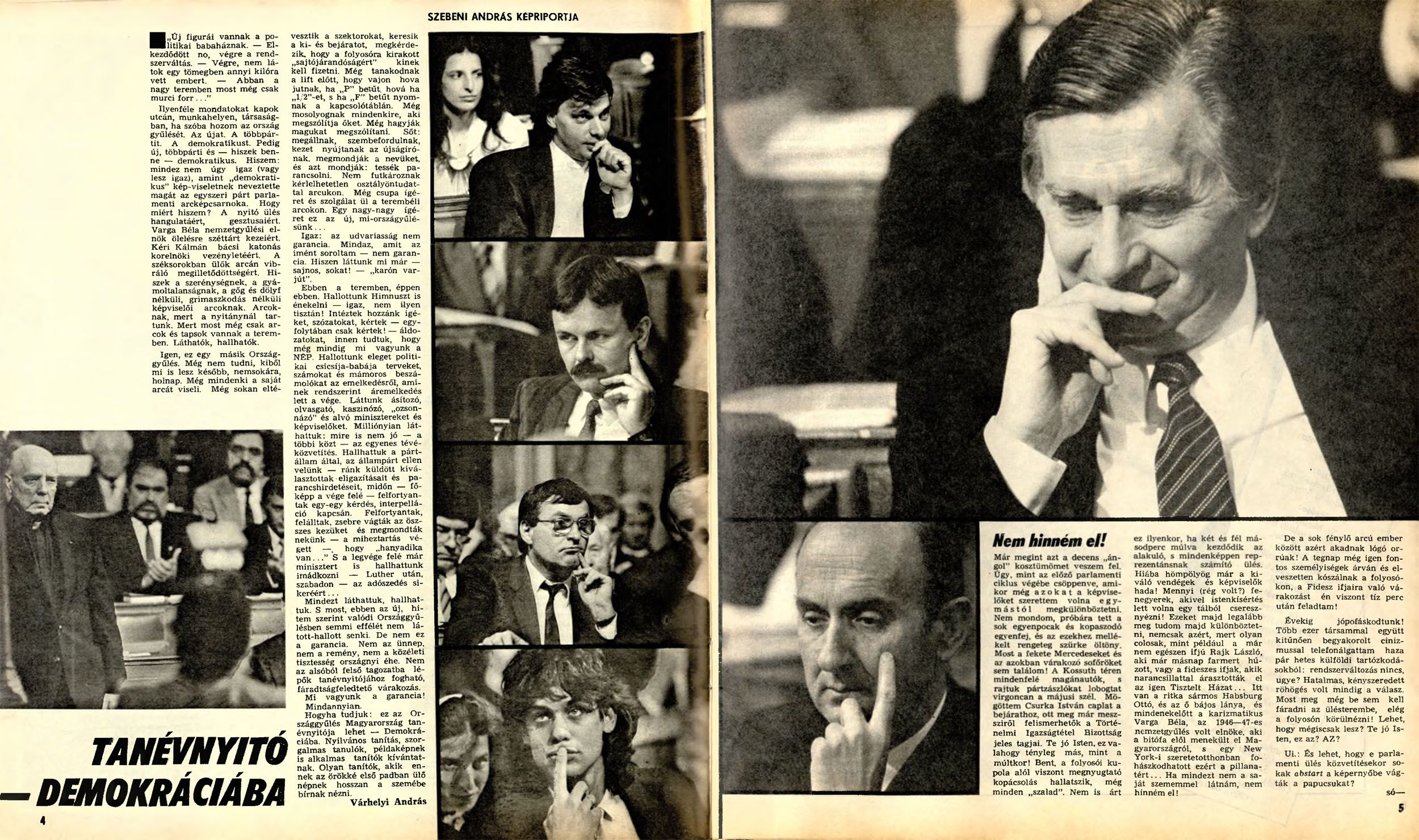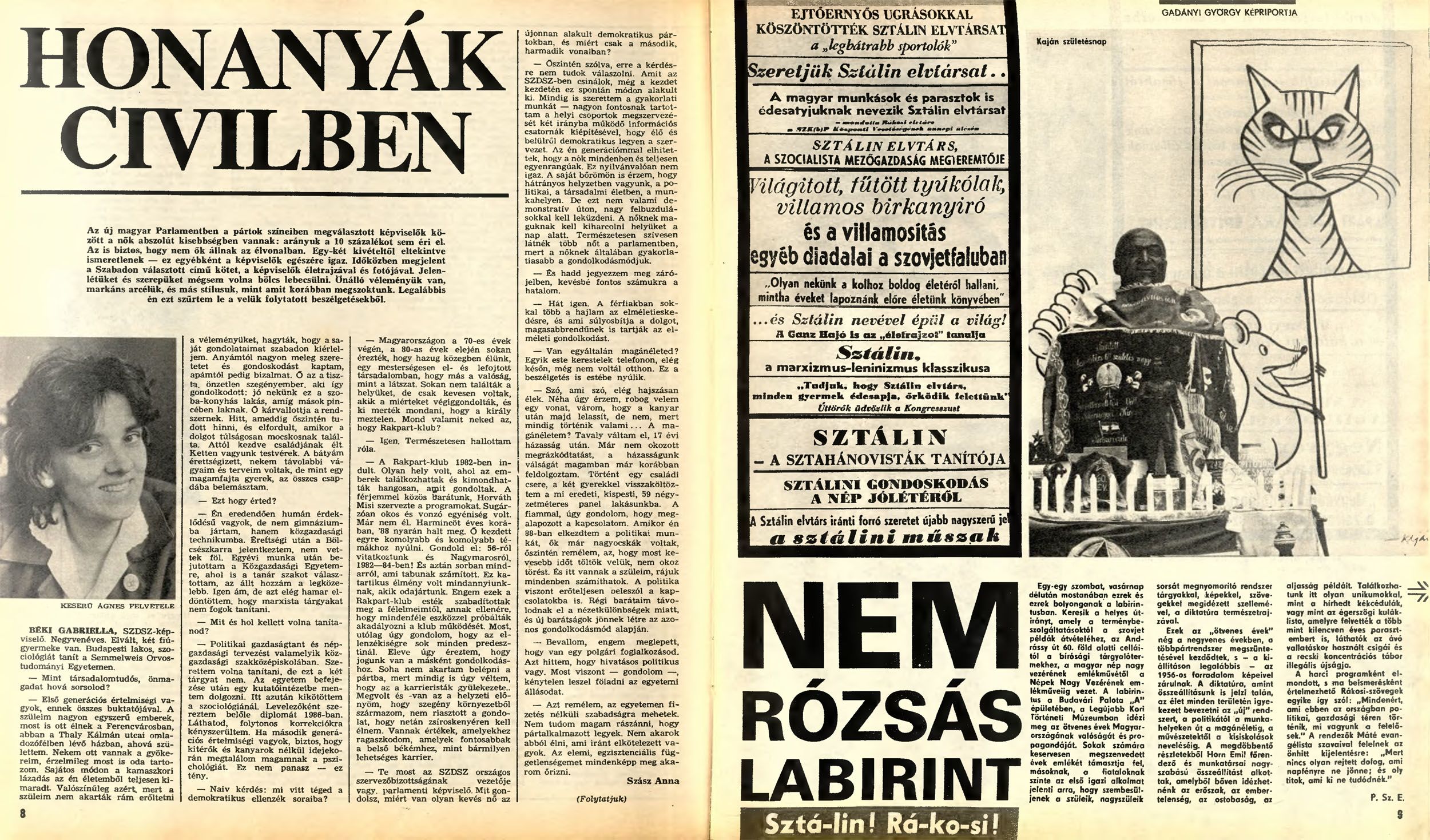 És igen, végérvényesen bekövetkezett a rendszerváltás a Nők Lapjánál is. Nem volt több nehézipari dolgozó nő a címlapon, sem frissen átadott munkásszállón készült, hozsannázó riport. Különleges évek voltak ezek, hiszen ma nemigen képzelhető el, hogy politikusok szerepeljenek a lapban, akkor azonban mást sem láttunk az oldalakon. Az arcok ismerősek… „Igen, ez egy másik Országgyűlés – írják. – Még nem tudni, kiből mi is lesz később […].” Mi már tudjuk.